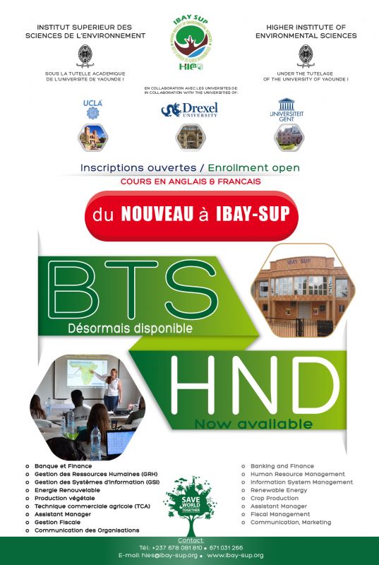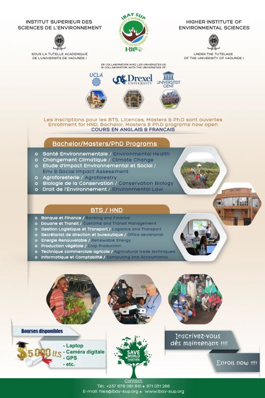 Les Inscription à l'institut supérieur des Sciences Environnementales de Nkolbisson à Yaoundé sont ouvertes pour les cycles, BTS, licence et master.